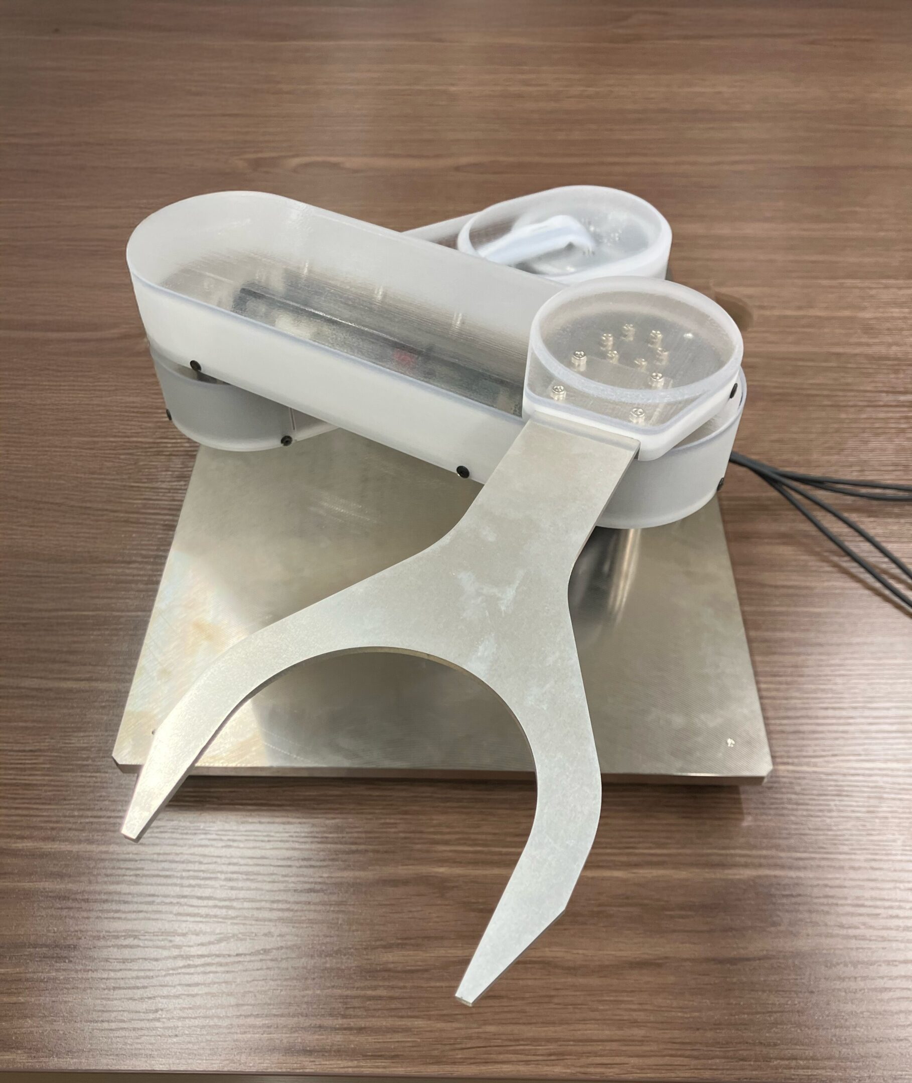外径φ30の小型中空モータを三軸使用したウエハの昇降デモ機。